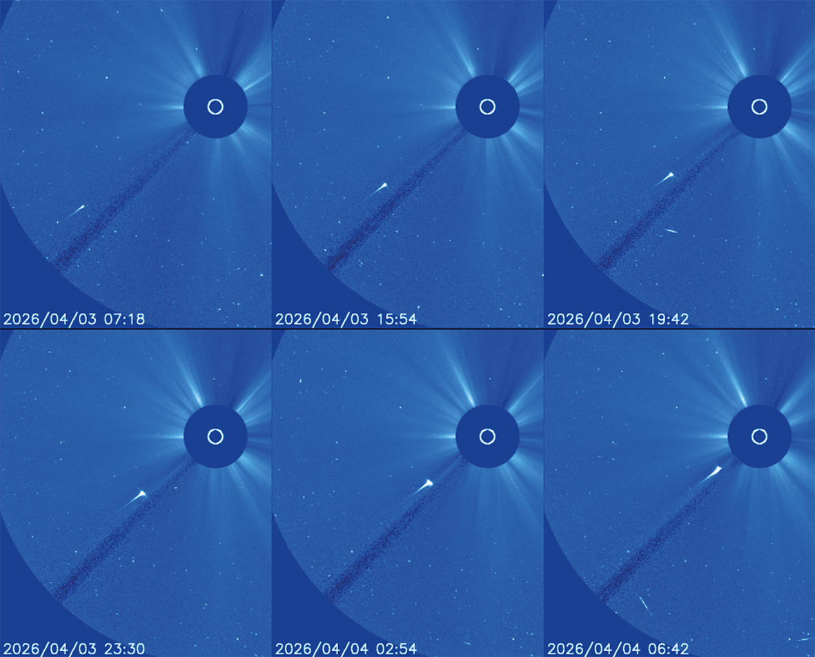 Der vermeintlich als «Osterkomet angekündigte C/2026 A1 (MAPS) hat sich in Sonnennähe komplett aufgelöst wie die letzten Bilder des SOHO-Satelliten vermuten lassen. Heute gestern früh war der Komet noch deutlich zu sehen, wurde im Tagesverlauf sehr viel heller, verschwand dann aber plötzlich. Vermutlich ist der kosmische Brocken verdampft.