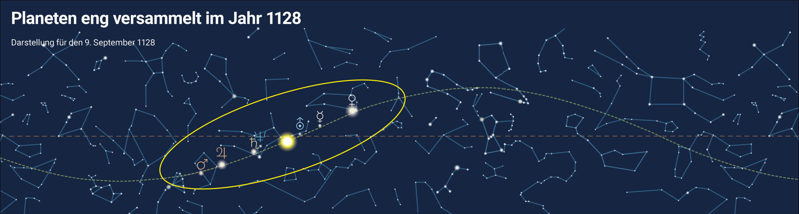 Die Planetenversammlung im September und Oktober 1128. (Grafik: Thomas Baer)