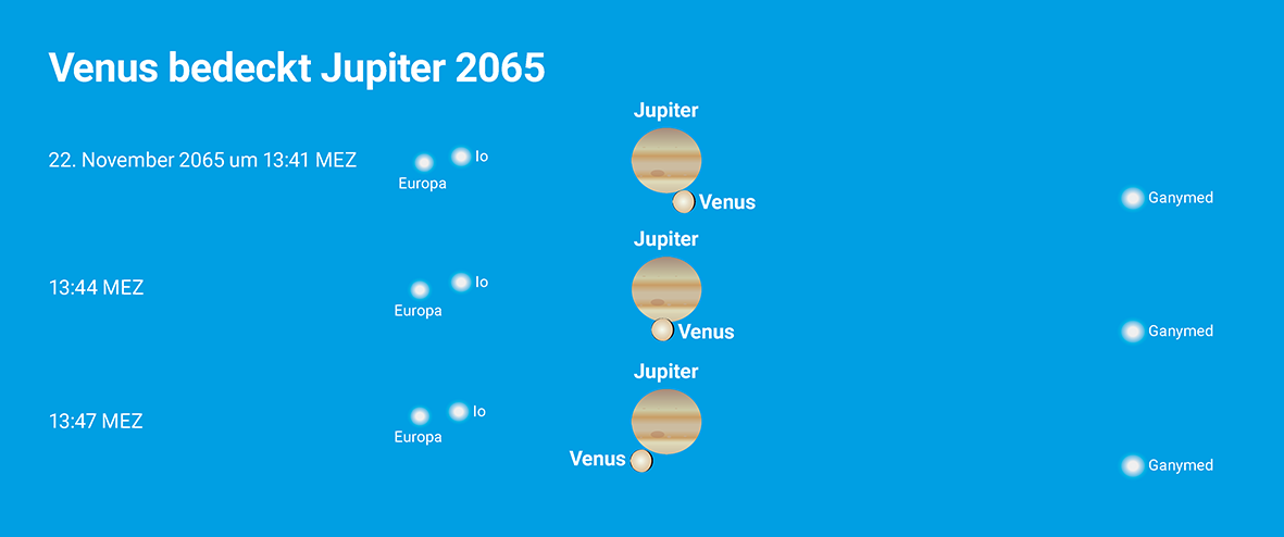 Die gegenseitige Bedeckung zwischen Venus und Jupiter am 22. November 2065. (Grafik: Thomas Baer)