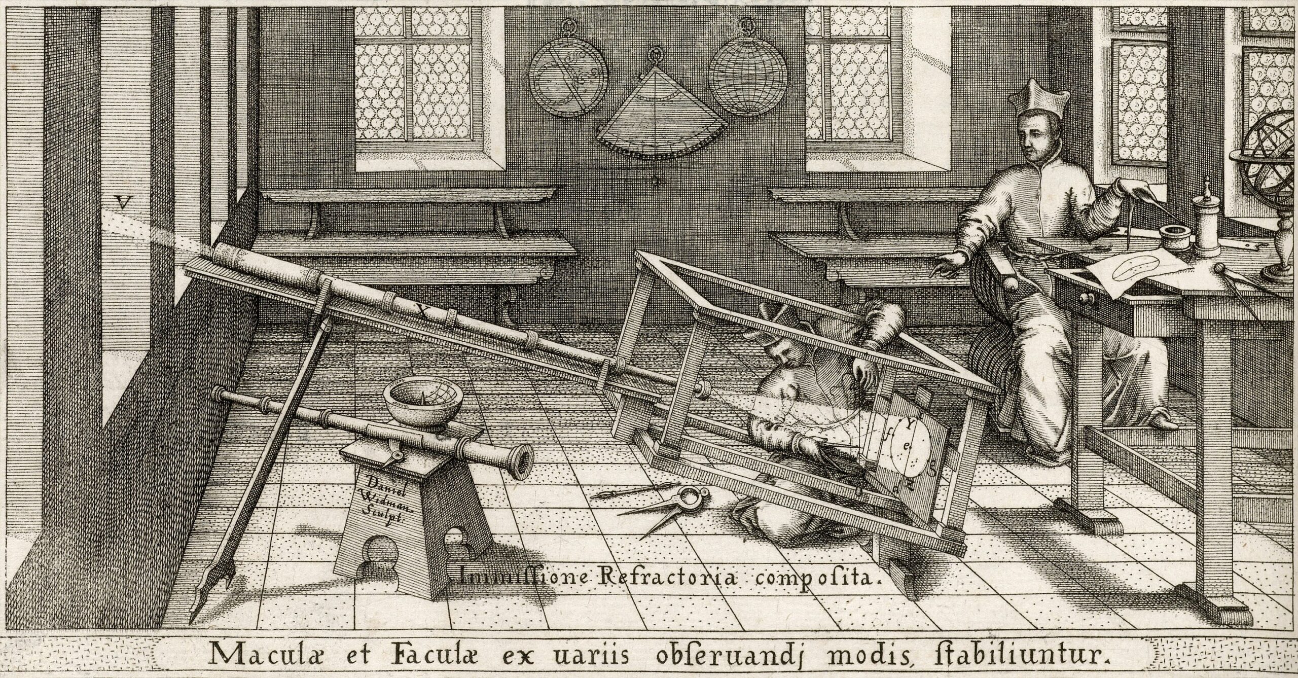 Christoph Scheiner beobachtete die Sonne mit einem selbstgebauten Projektionsschirm. (Quelle: Wikipedia)