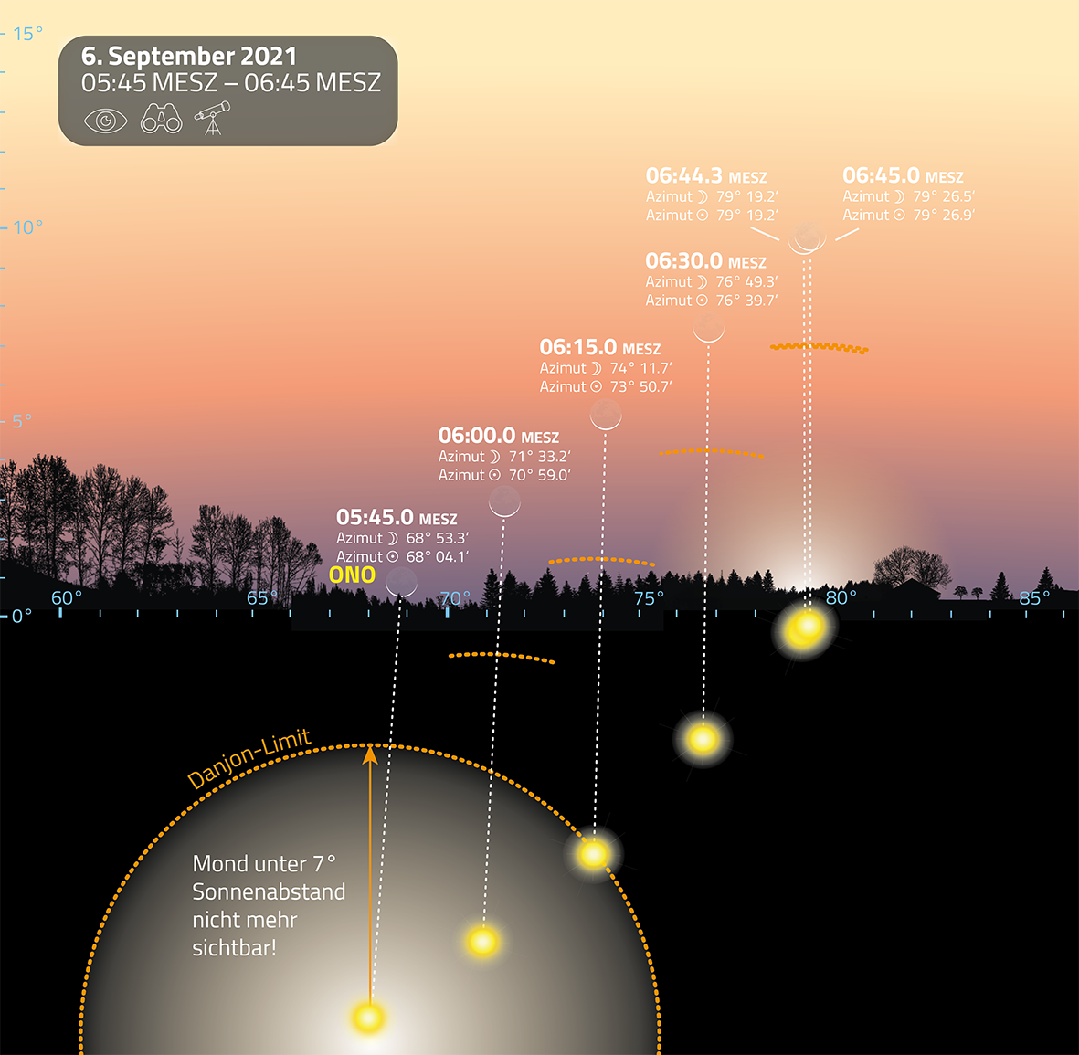 Am 6. September 2021 stand die Mondsichel vorübergehend senkrecht über der Sonne. (Grafik: Thomas Baer)