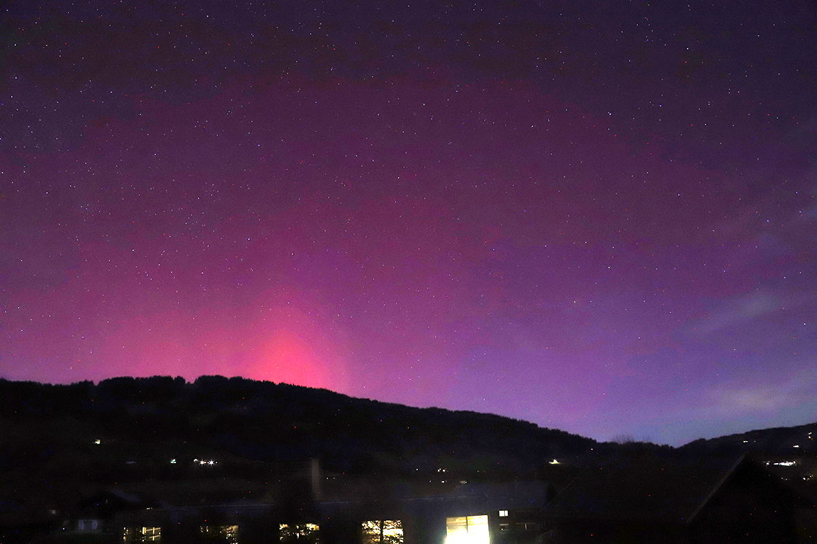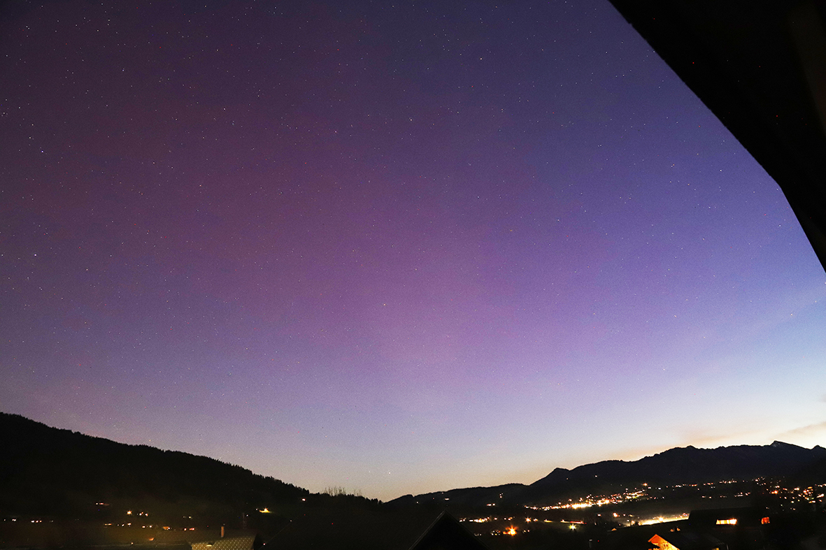 Polarlicht in der Morgendämmerung über dem Bregenzerwald. (Bild: Thomas Baer)