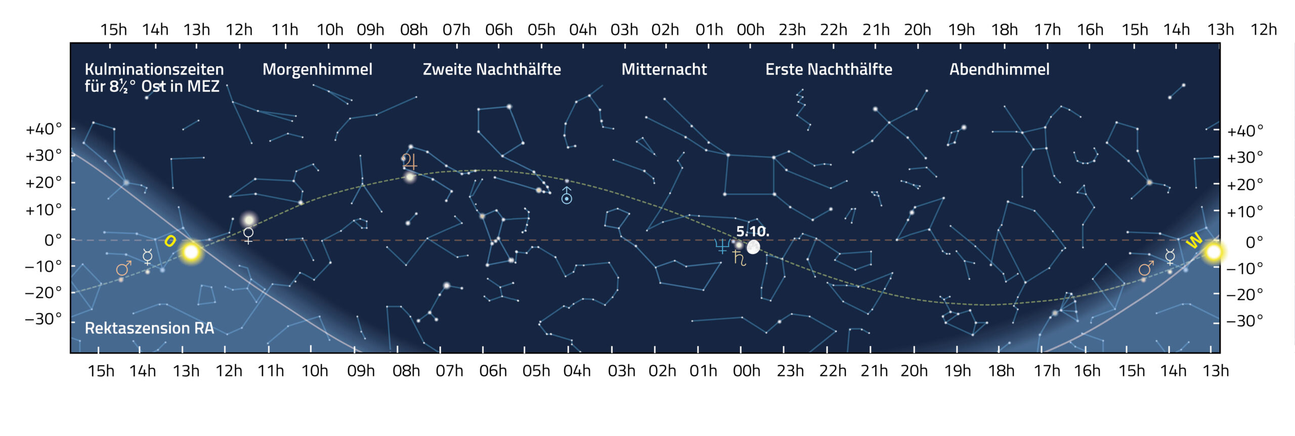 Astronomische Ereignisse heute (zeitlich chronologisch für Zürich)