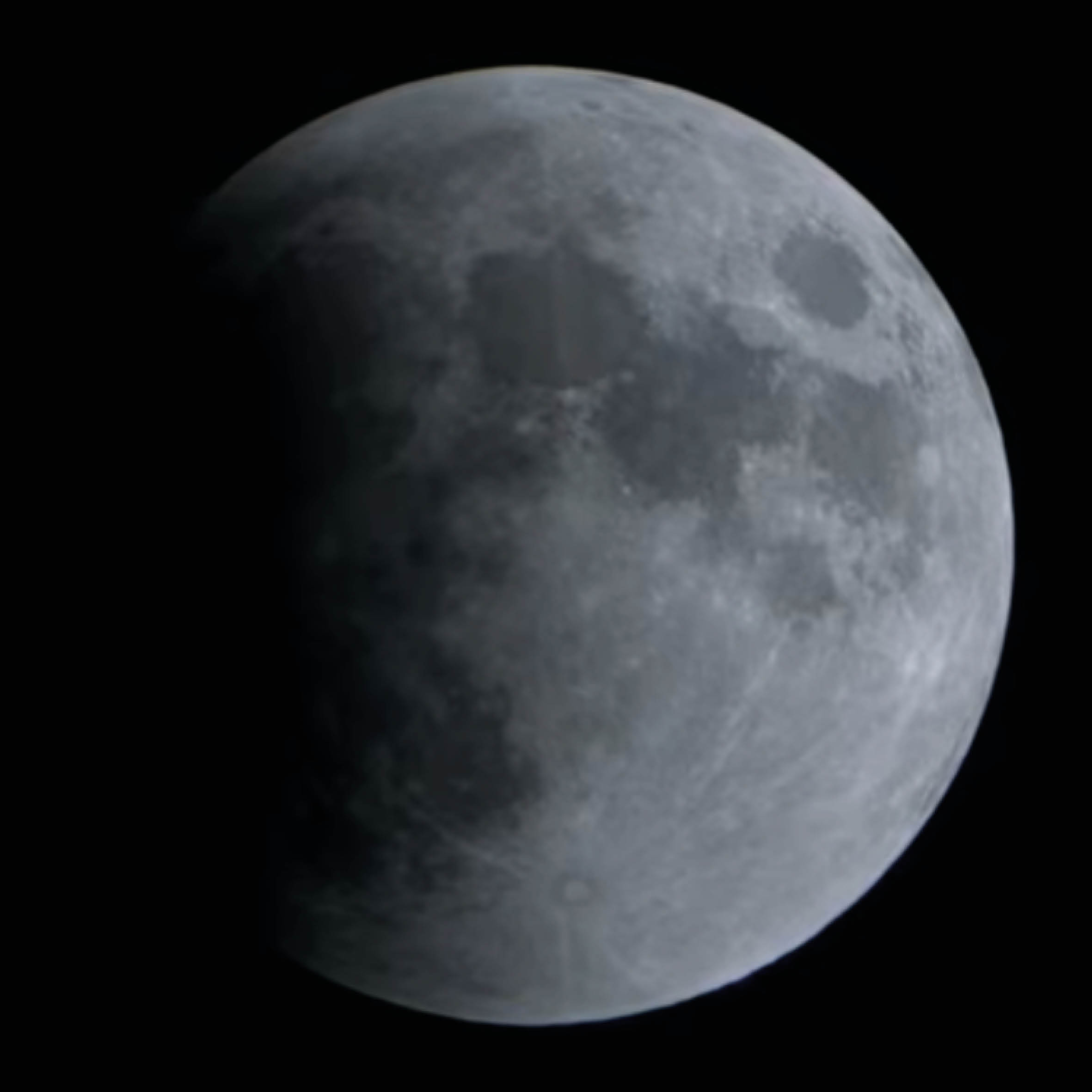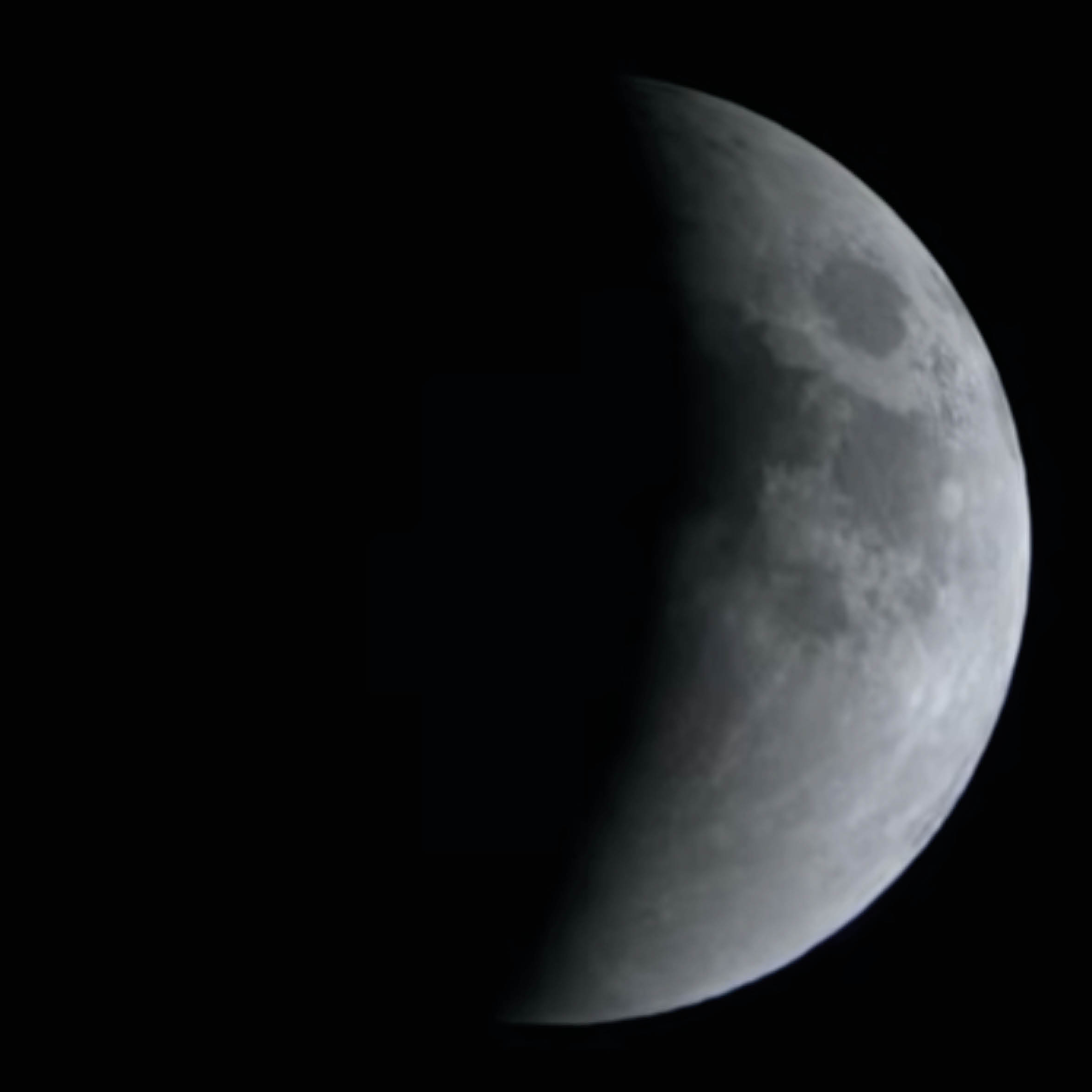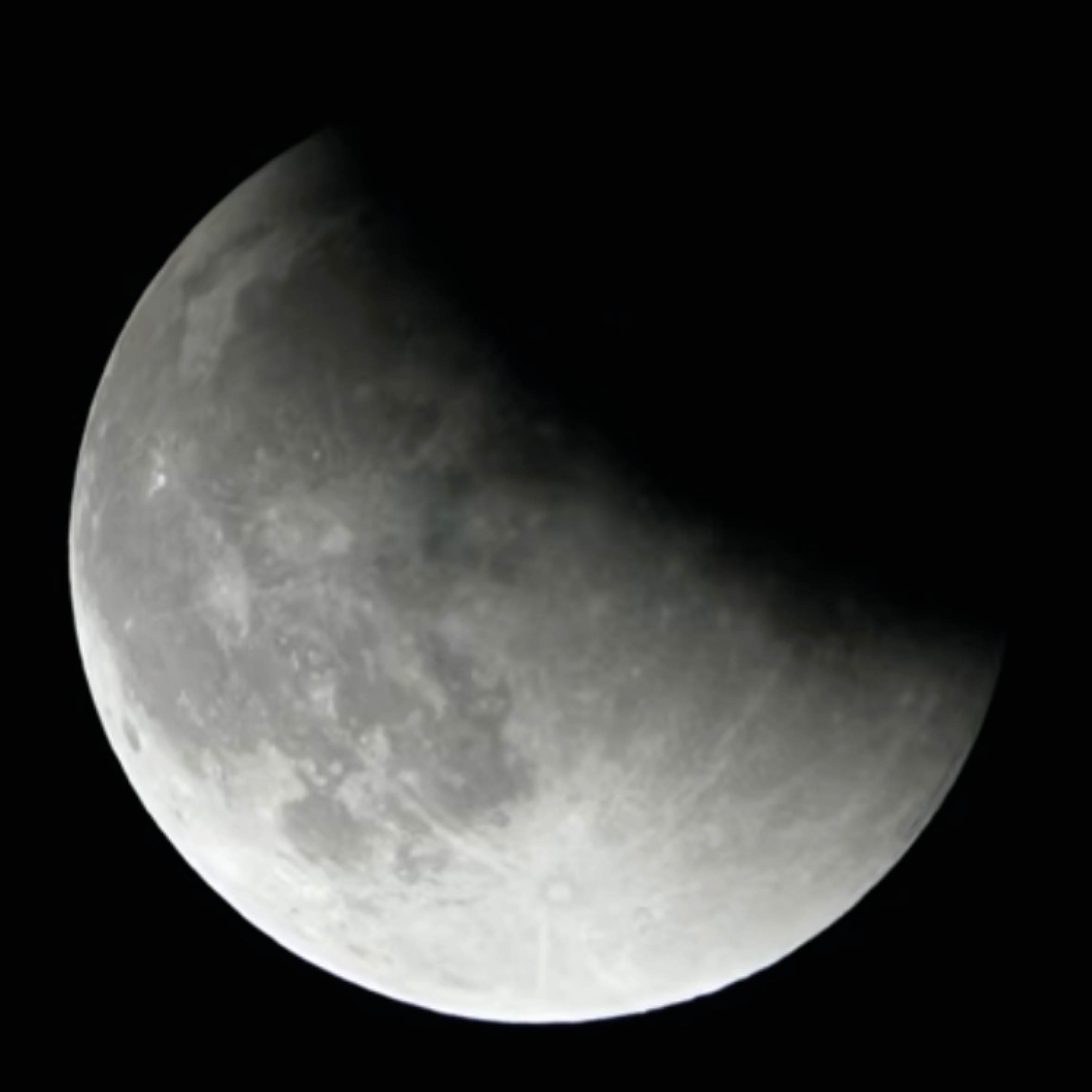 Die Hälfte des Mondes ist jetzt wieder beschienen. Es ist immer wieder beeindruckend, die Bewegung des Erdtrabanten während einer Finsternis zu erleben. Pro Stunde wandert er einen ganzen Monddurchmesser nach Osten.