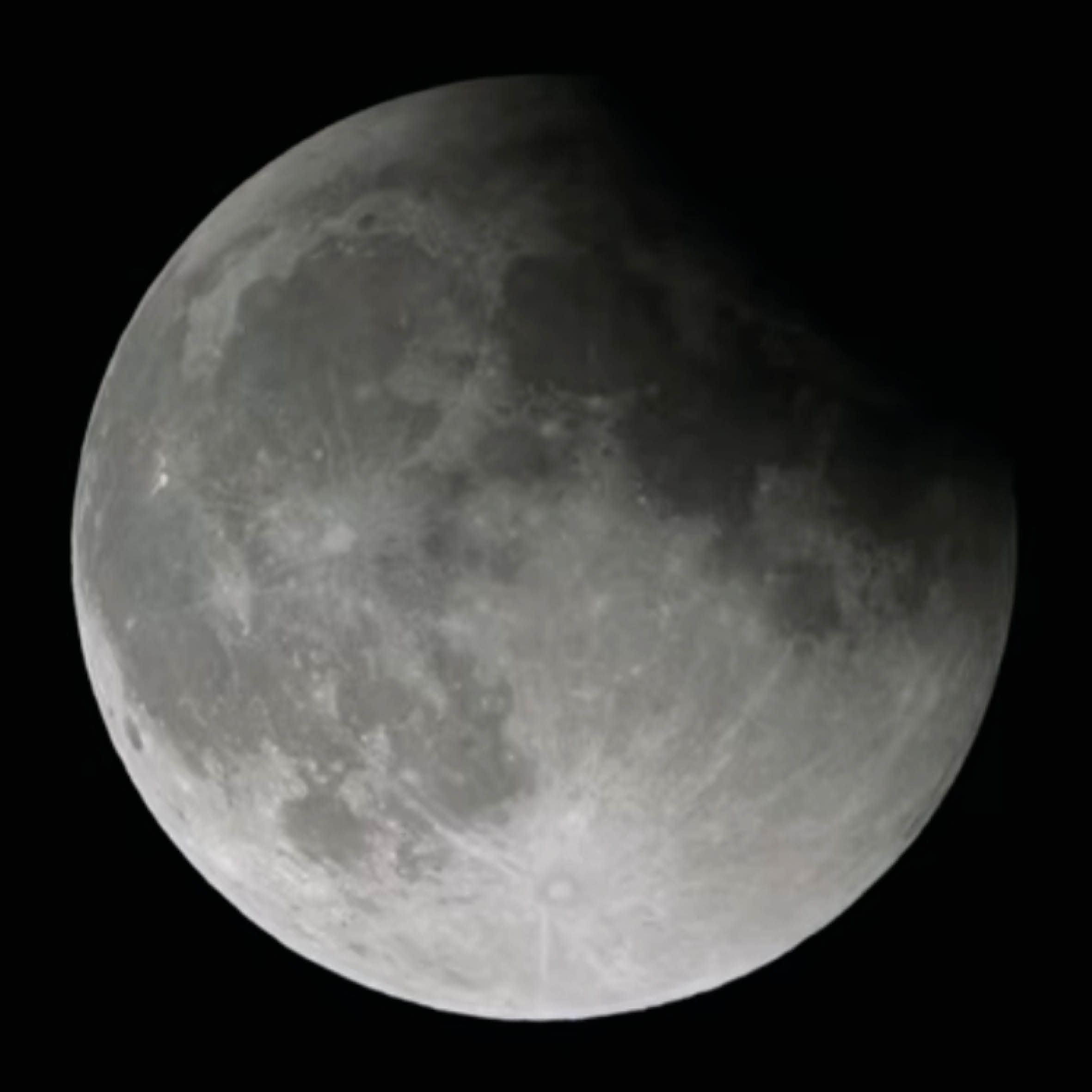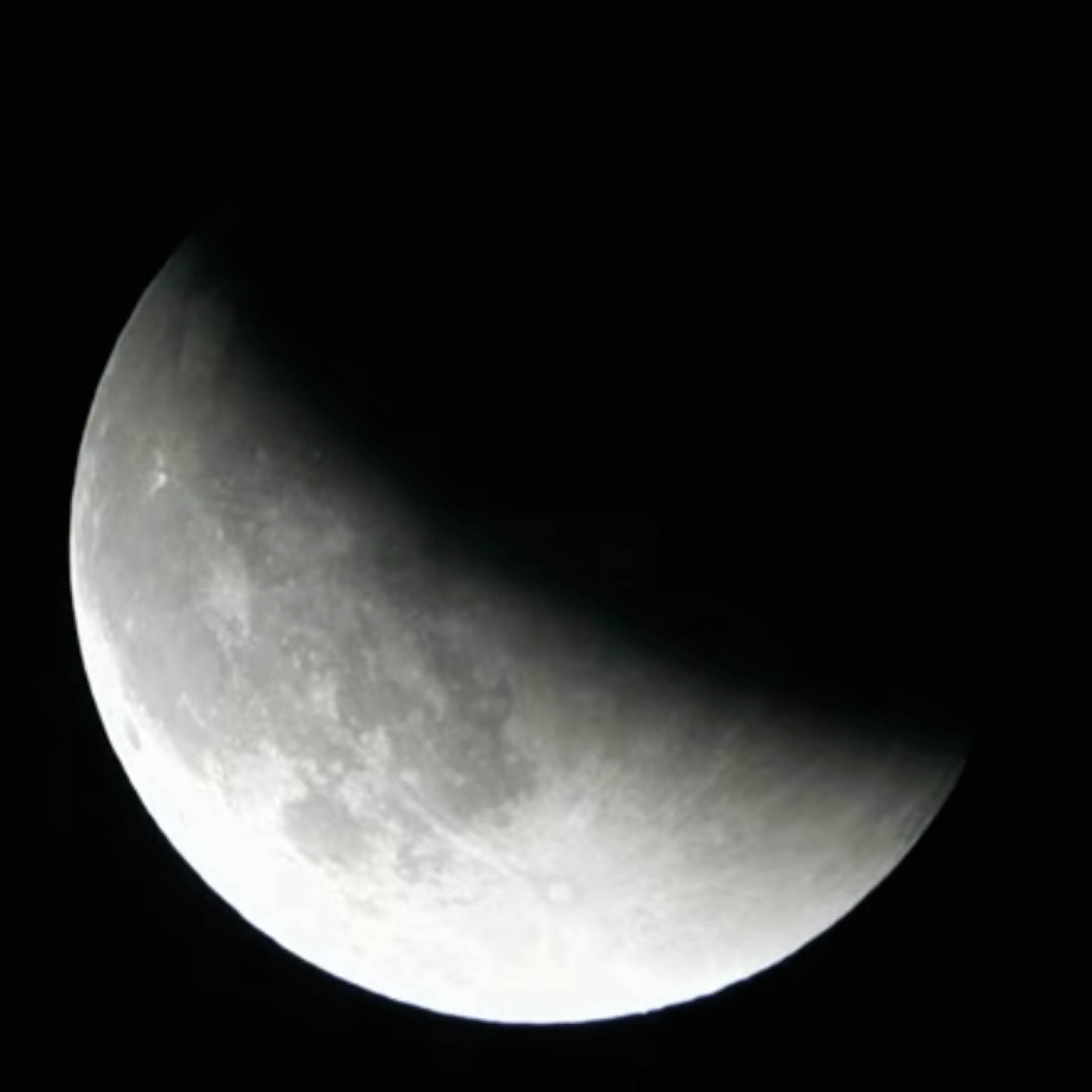 Die partielle Phase beginnt. Jetzt taucht der Mond in den dunklen Kernschatten ein.