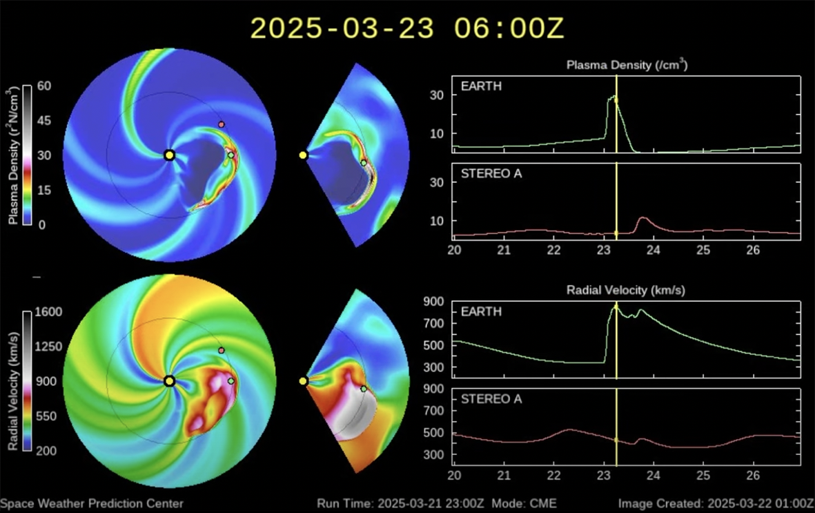 Erwartet wird eine Plasmadichte von 30 Partikeln pro Kubikzentimeter und einen Sonnenwindanstieg auf bis zu 800 km/s oder mehr. Die Plasmafront dürfte nach jetzigem Wissenstand gegen den frühen Sonntagmorgen (04:00 Uhr / 05:00 Uhr MEZ) hin die Erde erreichen. Wer früh aufsteht, hat gute Chancen, zumindest fotografisch Polarlichter zu sehen.