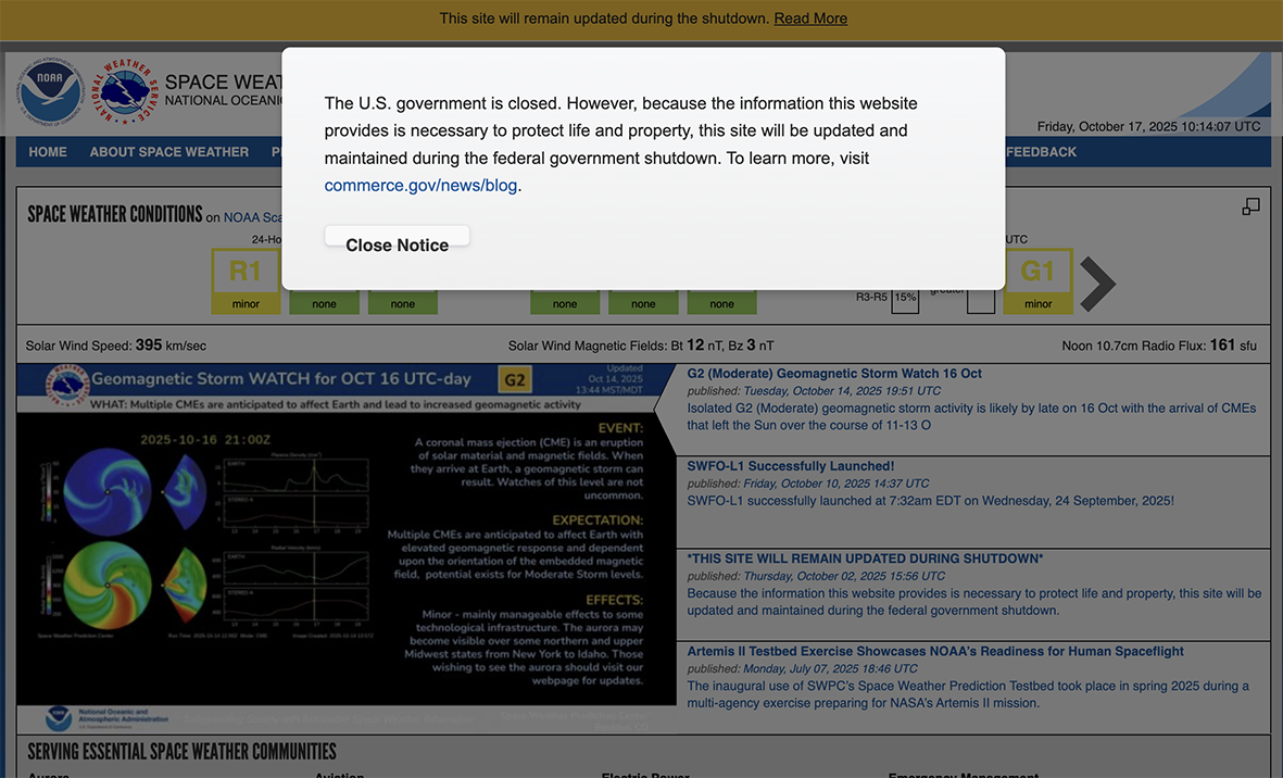 «Aufgrund des Wegfalls der Bundesfinanzierung aktualisiert die NASA und NOAA diese Website nicht», heisst es aktuell, wenn man Daten auf den NOAA- und NASA-Webseiten einsehen will. So gibt es im Moment keine neuen Aufnahmen des Interstellaren Objekts 3I/ATLAS der HIRISE-Kamera an Bord des MRO. Die Seiten selbst sind ausserdem langsam und laden zum Teil nicht. Aktuelle Daten fehlen gänzlich.